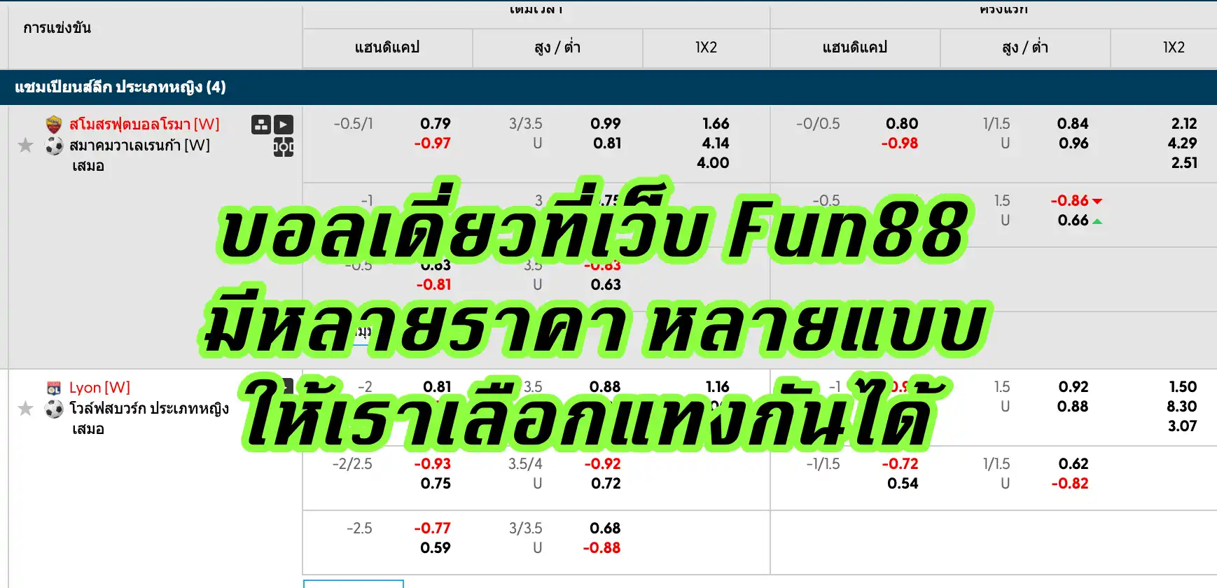 *แทงบอลทายผลแชมป์กับเว็บ Fun88 มันมีหลายราคาหลายแบบให้เราเลือกแทงเลยทีเดียว*